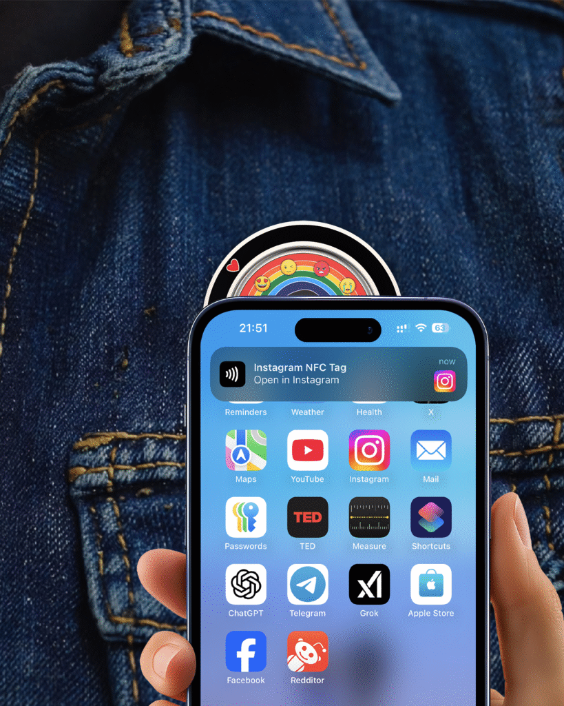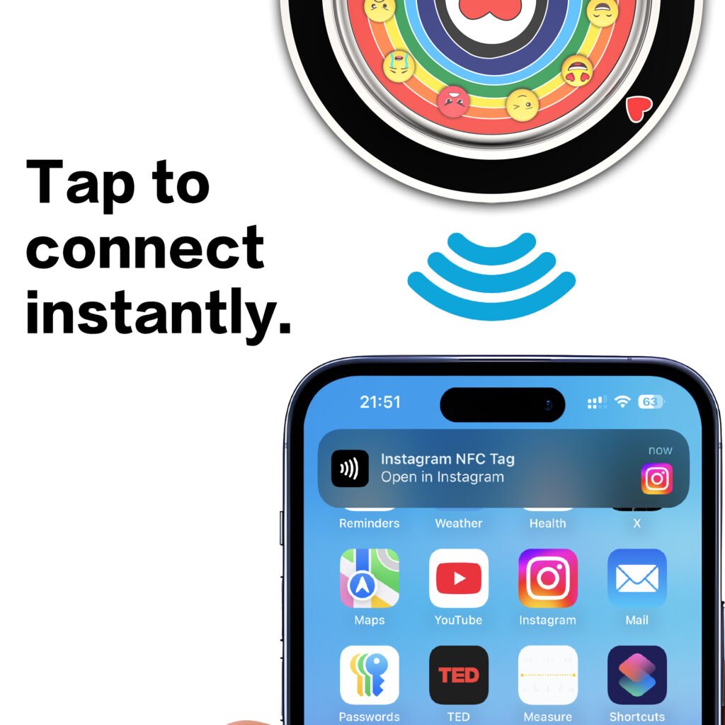 Simply bring your phone close to the pin to access your social page .There’s so much more you can do.